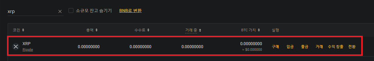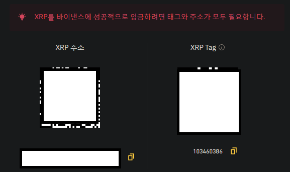 해당 메뉴에서 입금을 누르면 바이낸스의 지갑 주소를 확인할 수 있다. (메모도 항상 같이 작성할 것) 리플은 전송속도가 아주 빠른 코인 중 하나이기 때문에, 본인의 경우 바이낸스 입금까지 약 3분 정도 걸린 것 같다. 이후에도 입금이 안된다면 본인이 메모 혹은 태그를 잘못입력했거나, 암호화폐의 종류가 다르거나, 주소가 잘못된 것일 수도 있으니 확인 요망.