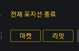 포지션을 잡으면 레버리지와, 내 진입가격, 시장평균가를 확인할 수 있고 제일 중요한 청산가격도 확인할 수 있다. 청산가격에 도달한 경우 강제청산되므로 주의하여야한다(당연히 남는 돈도 없다.) 동일하게 마진비율이 100%까지 올라가면 강제 청산되며, 청산가격에 가까워질수록 비율이 높아진다.