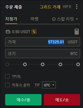 이런 화면이 보일텐데, 본인이 비트코인의 상승을 예측한다면 매수/롱, 하락을 예측한다면 매도/숏 포지션을 취하면 된다.